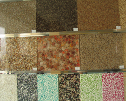 Solid Surface products are manufactured with high performance resin systems such as acrylic and unsaturated polyester. They have very high filler content and do not have gel coats. These materials are used primarily in counter top and wall panel applications. A design benefit of solid surface materials is their ability to be machined to like wood, though special equipment and fabrication procedures are required. They can be precisely cut and bonded to fit nearly any surface shape. Solid surface materials can also be routed for decorative edging which can be applied with specially formulated adhesives. Since the color goes clear through the product, scratches, chips and stains can be easily sanded out.