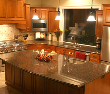 (1)Taille régulière île Haut: 96 "x 36" x 3 / 4 "(1-1/4"), 3 côtés tore / accolade, 78 "x36" x3 / 4 "(1-1/4"), 4 côtés arrondis / accolade largeur standard pour les dessus de barre est de 18 ".